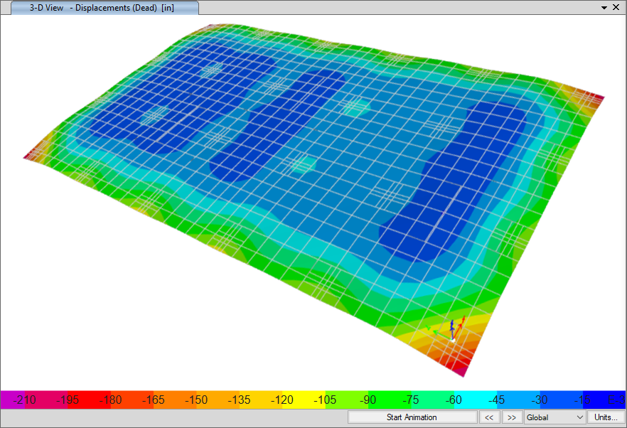 運(yùn)行分析后可以顯示變形幾何。鼠標(biāo)置于模型上會(huì)立即顯示數(shù)值。變形幾何可以顯示為彩色云圖或等值線圖。