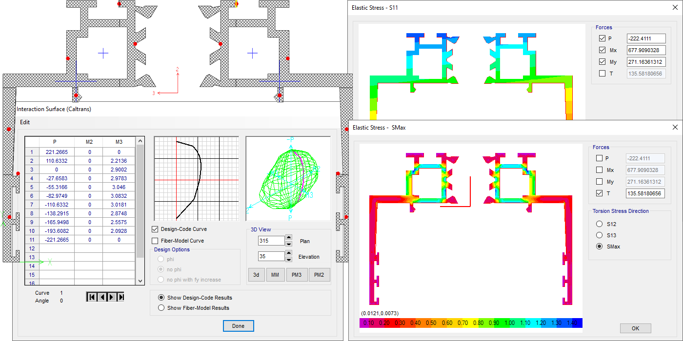 截面設(shè)計器是一個集成化的實用程序,內(nèi)置于 SAP2000中文版、CSiBridge中文版 和 ETABS中文版 中,可以創(chuàng)建用戶自定義的橫截面并對其進(jìn)行分析。截面設(shè)計器可用于評估構(gòu)件屬性和非線性響應(yīng),包括非線性鉸和 PMM 鉸行為。