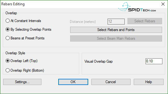 在接頭處,鋼筋必須重疊。在SPIDER中,有管理重疊鋼筋的功能,具有多種選項。