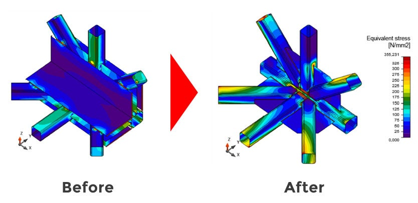 合并FEA模型中的鄰近節(jié)點,處理偏心連接的支撐桿件。