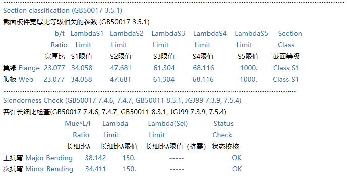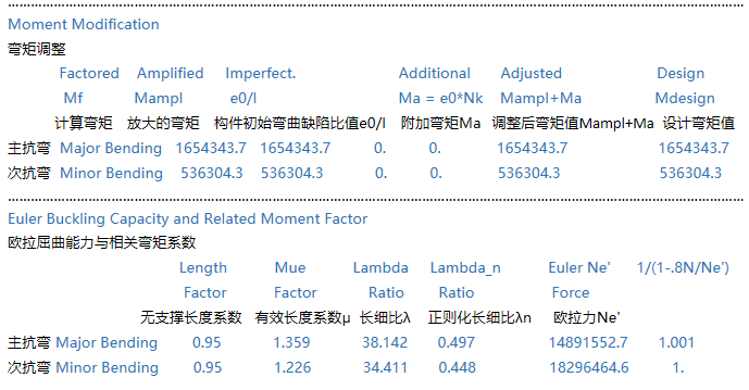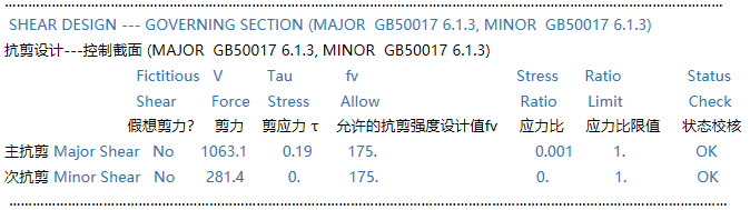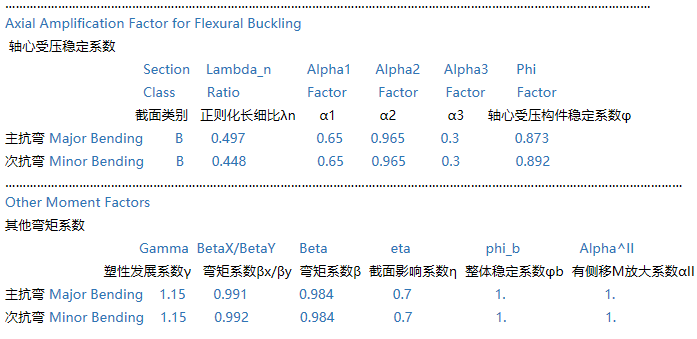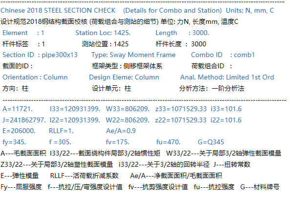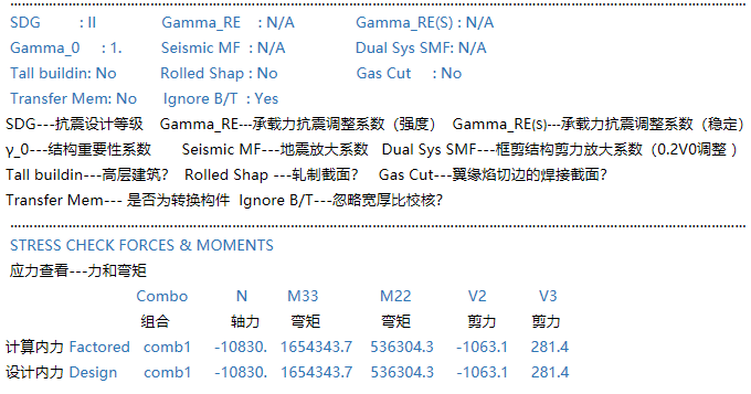 鋼框架柱設(shè)計(jì)細(xì)節(jié)輸出中的每項(xiàng)含義是什么?