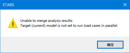 第一步:在主計(jì)算機(jī)上運(yùn)行目標(biāo)模型,且必須設(shè)置為并行計(jì)算(圖1),否則程序會(huì)在后續(xù)合并分析結(jié)果時(shí)提示警告(圖2)。并行計(jì)算的設(shè)置方法:選擇菜單欄【分析>SAPFire高級(jí)選項(xiàng)】命令,將“分析進(jìn)程”選項(xiàng)設(shè)置為“獨(dú)立進(jìn)程“,然在“并行工況選項(xiàng)”中進(jìn)行勾選。