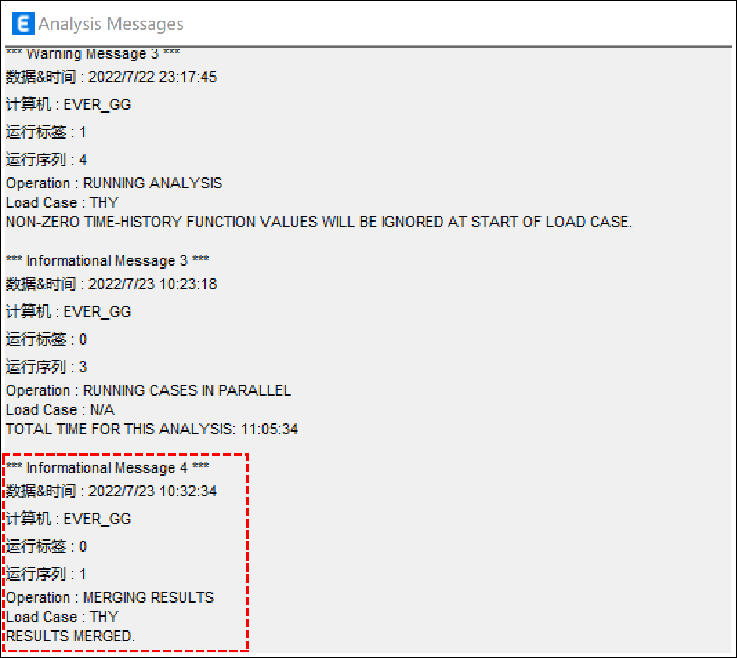 最終,分析信息中會(huì)為每一個(gè)荷載工況包含一條合并結(jié)果的提示信息,如圖3所示。