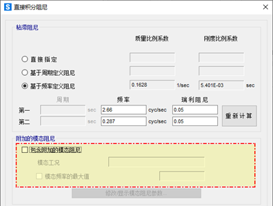 采用直接積分法定義時(shí)程分析時(shí),在工況定義阻尼選項(xiàng)中有“附加的模態(tài)阻尼”選項(xiàng),該模態(tài)阻尼的含義是什么,該如何使用?