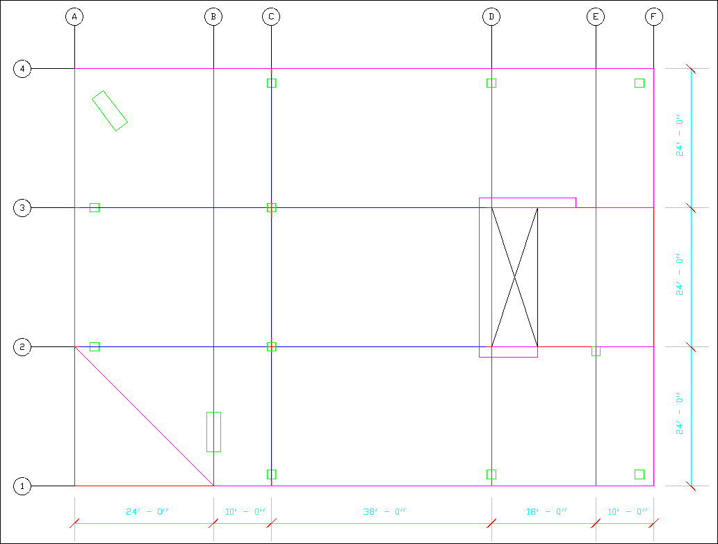 如下圖所示為在AutoCAD中繪制的建筑平面圖,ETABS和SAFE均有導(dǎo)入建筑平面圖的功能,請(qǐng)問如何基于建筑平面圖快速建模?程序?qū)L制的幾何元素又有什么要求?