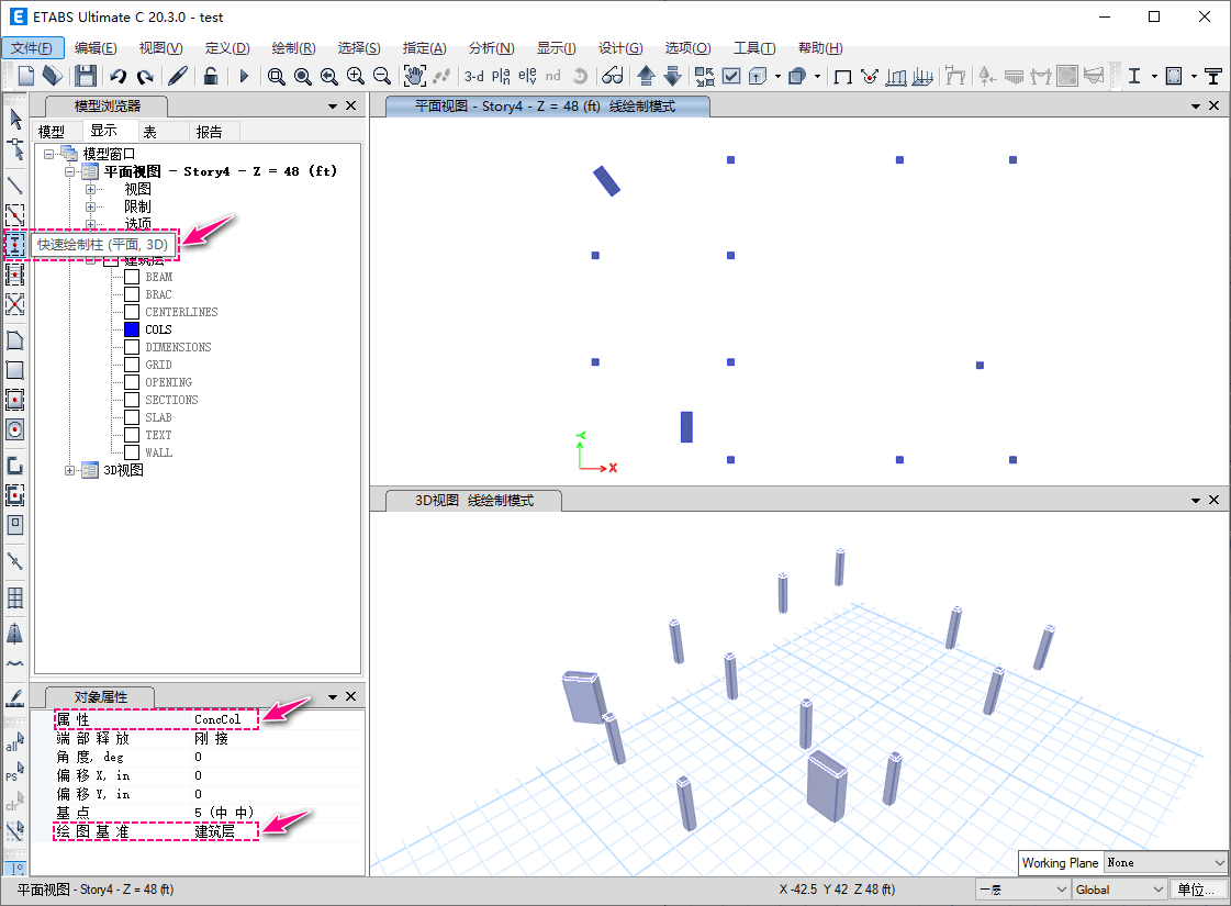 圖7:模型瀏覽器快速添加柱對(duì)象