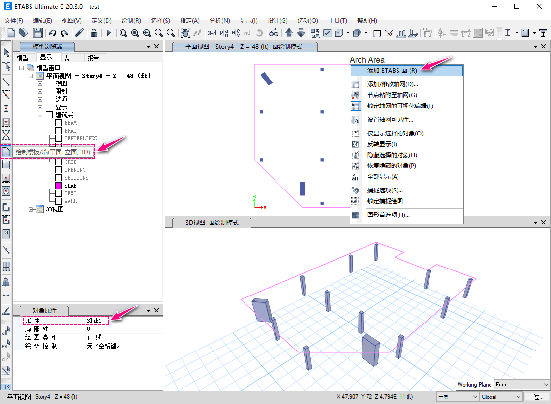 圖6:繪制樓板并添加ETABS面