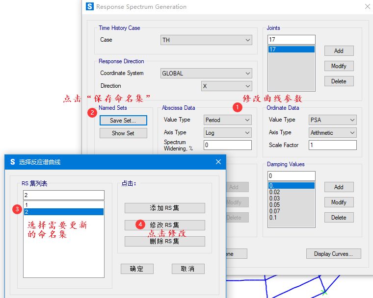 如果需要修改之前定義的反應(yīng)譜曲線,可以通過(guò)以下四步進(jìn)行修改。