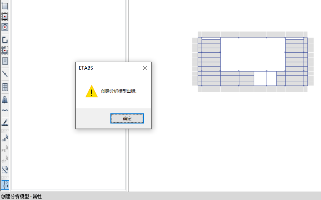 盈建科轉(zhuǎn)的 ETABS 模型在運行分析時提示“創(chuàng)建分析模型錯誤”,如圖1所示,應該如何解決?