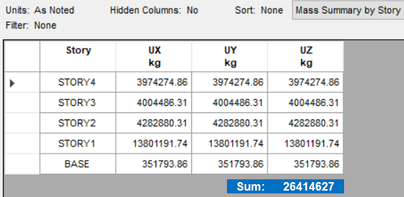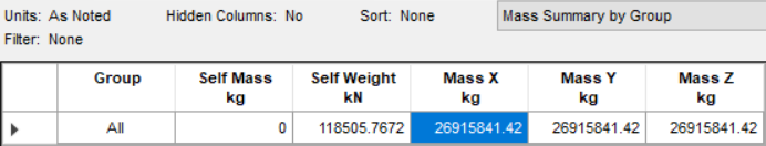 如下圖所示,該模型輸出的Joint mass和Story mass的總和均為26414627kg,小于Group All的質(zhì)量26915841kg,這與“負(fù)質(zhì)量引起的樓層總質(zhì)量與Group All質(zhì)量結(jié)果不一致”一文中的現(xiàn)象不一致,請(qǐng)問(wèn)是什么原因?qū)е碌模?/span>