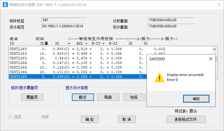 在SAP2000中完成構(gòu)件設(shè)計(jì)后,查看設(shè)計(jì)信息時(shí),彈出如圖1所示的報(bào)錯(cuò),并且相應(yīng)的設(shè)計(jì)結(jié)果無法顯示,如圖2所示。請(qǐng)問這是什么原因?qū)е碌模?/span>