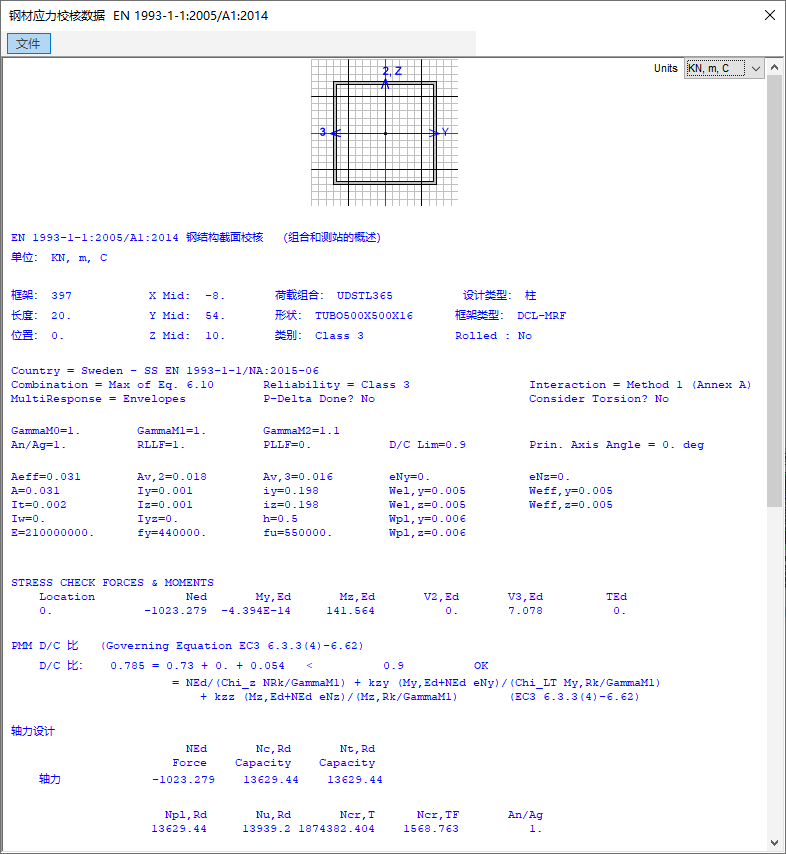 例如,在問題描述的模型中,框架截面名稱包含中文字符,如圖3所示。黃色陰影區(qū)的截面名稱使用了正確的字符格式,包含英文字母和數(shù)字;而綠色陰影區(qū)的截面名稱則包含中文輸入法中的乘法符號(hào)“×”。將所有的乘法符號(hào)“×”替換為英文字母“X”后,重新運(yùn)行設(shè)計(jì),查看設(shè)計(jì)信息時(shí)不再出現(xiàn)報(bào)錯(cuò)提示,設(shè)計(jì)結(jié)果也可以正常顯示,如圖4所示。