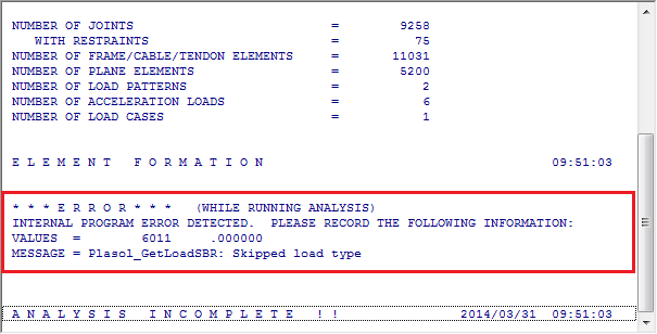 load type”(即:荷載丟失)的錯(cuò)誤信息且終止計(jì)算。