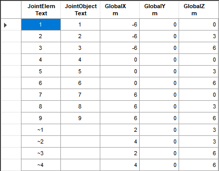 2,在上述節(jié)點(diǎn)數(shù)據(jù)表格中,有限元節(jié)點(diǎn)(以“~”為前綴)及其坐標(biāo)值如下所示。用戶可根據(jù)需要復(fù)制此類節(jié)點(diǎn)的坐標(biāo)值或直接導(dǎo)出至 Excel 進(jìn)行二次處理。