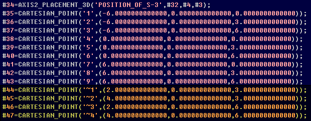 除上述方法外,用戶也可以直接導(dǎo)出分析模型的文本文件,然后在文本編輯器中打開后刪除無關(guān)內(nèi)容只保留有限元節(jié)點(diǎn)信息。例如,點(diǎn)擊【文件>導(dǎo)出>CIS/2 STEP 文件】命令并保存 STP 文件,之后即可該文件中查看有限元節(jié)點(diǎn)及其坐標(biāo)值,如下所示。