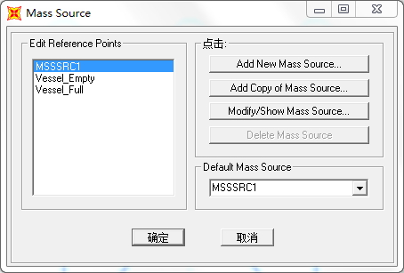 多質(zhì)量源的定義如下圖所示,可根據(jù)結(jié)構(gòu)的不同受力狀況指定多個(gè)不同的質(zhì)量源,且可以在此對(duì)話框中設(shè)置默認(rèn)的質(zhì)量源。在默認(rèn)的情況下,模型中的所有工況將使用此默認(rèn)質(zhì)量源做為工況求解的質(zhì)量。