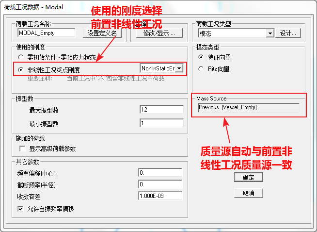 附:在其他的線性工況中,如需要使用不同的質(zhì)量源,也可以用此方法修改工況求解中使用的質(zhì)量源。