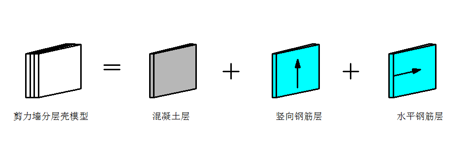 按照分層殼理論定義剪力墻模型,最直觀的情況是將剪力墻分為5層,包括:混凝土層,豎向、水平鋼筋各兩層,如下圖2所示。