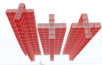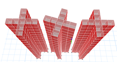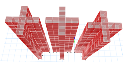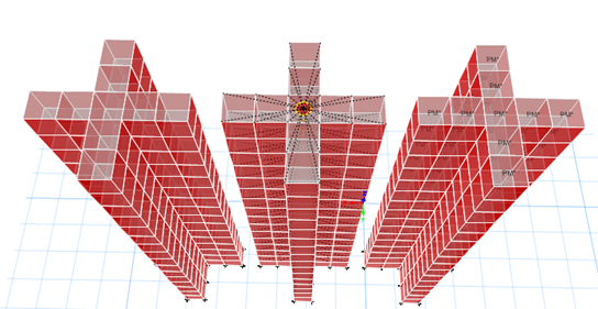 模型一(左):常規(guī)模型,剪力墻與樓板均無修正。